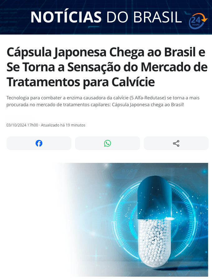 “Cápsula que bloqueia a enzima 5 alfa-redutase, promete revolucionar o combate à calvície, oferecendo resultados impressionantes sem a necessidade de cirurgias ou procedimentos invasivos,” afirma Yoshinori Ohsumi cientista responsável pela pesquisa.