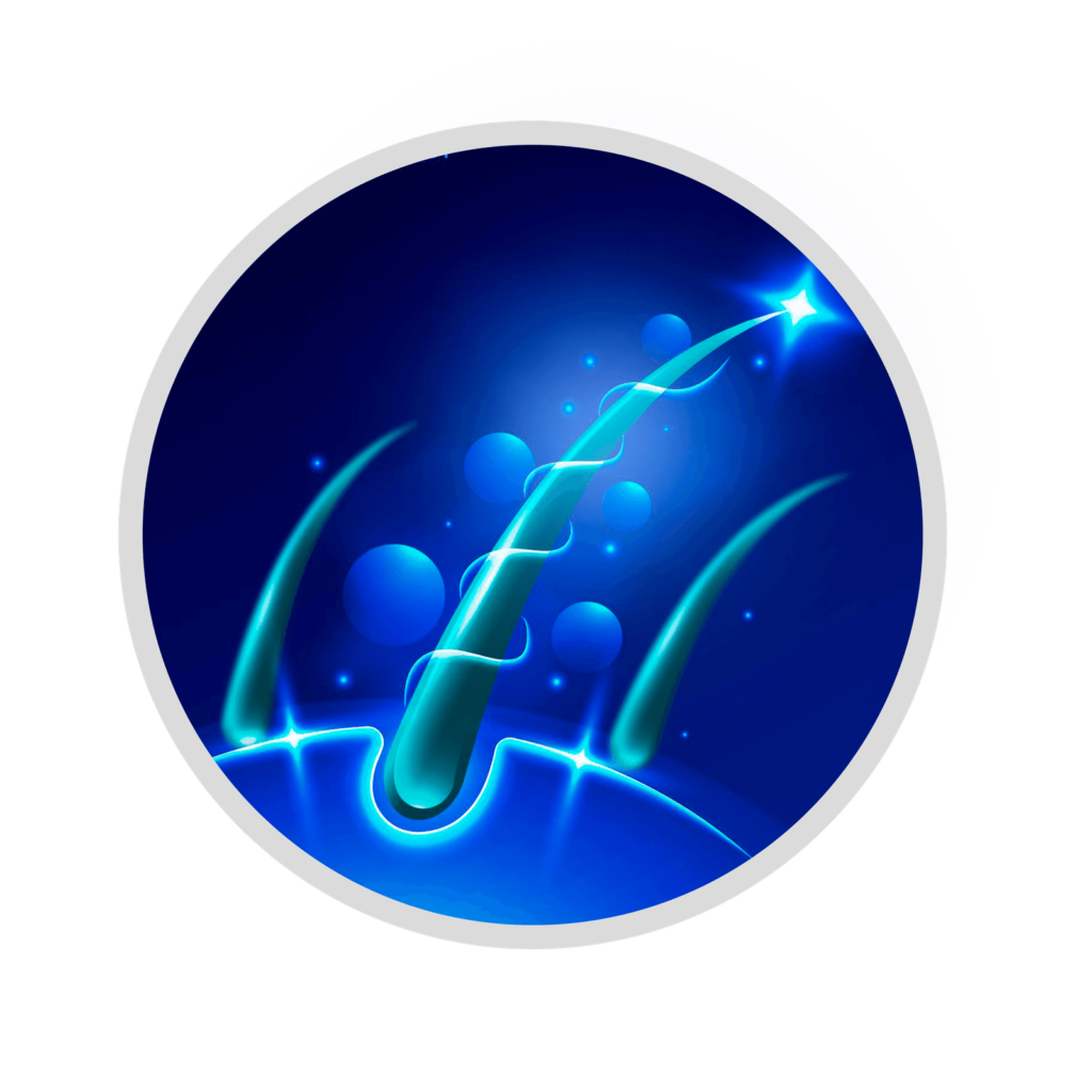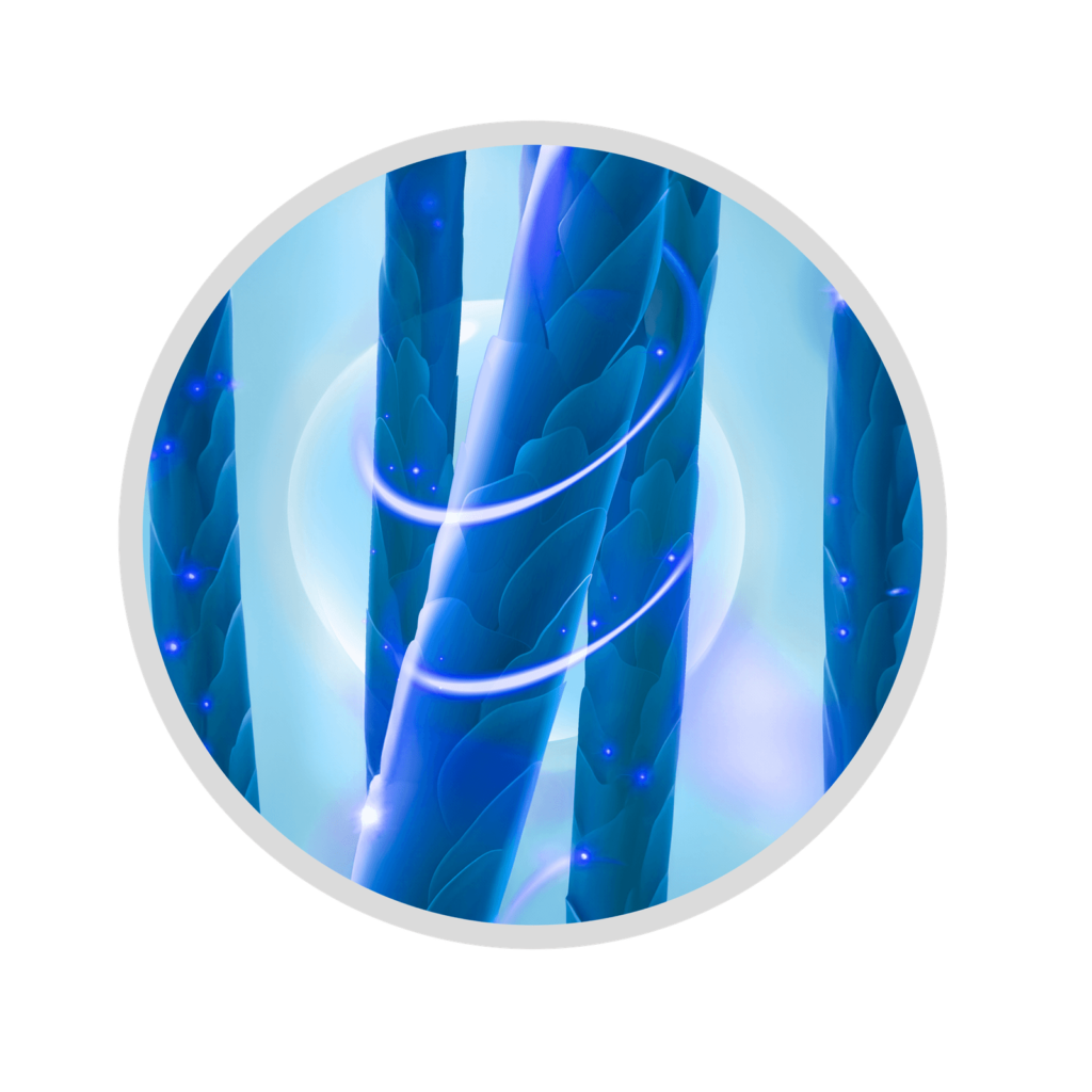 O diferencial dessa tecnologia está na sua abordagem multifacetada. Ela regula o ciclo capilar ao prolongar a fase de crescimento dos fios e reduzir a queda, além de melhorar a circulação sanguínea no couro cabeludo, garantindo que os folículos recebam os nutrientes essenciais para sua recuperação.